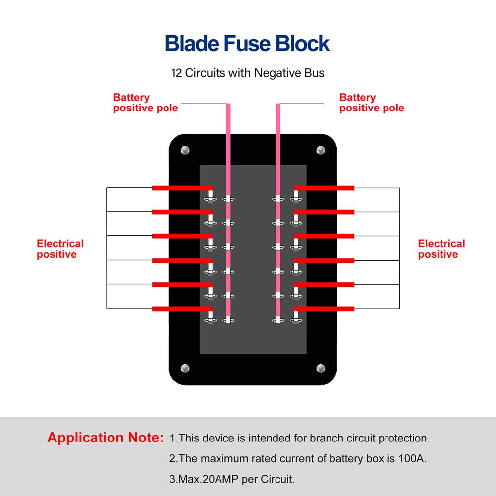 Rooha Fuse Box 12 Way Blade 12v 24v Fuse Holder For Truck Car Boat Marine Rv Walmart Com